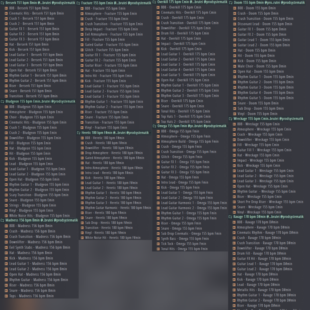 Each construction kit features live recorded guitars, hard hitting drums and unique FX sounds that you won't hear anywhere else! We've made sure to include multiple sections within each kit for intros, choruses, verses, bridges and breakdowns, giving you everything you need.